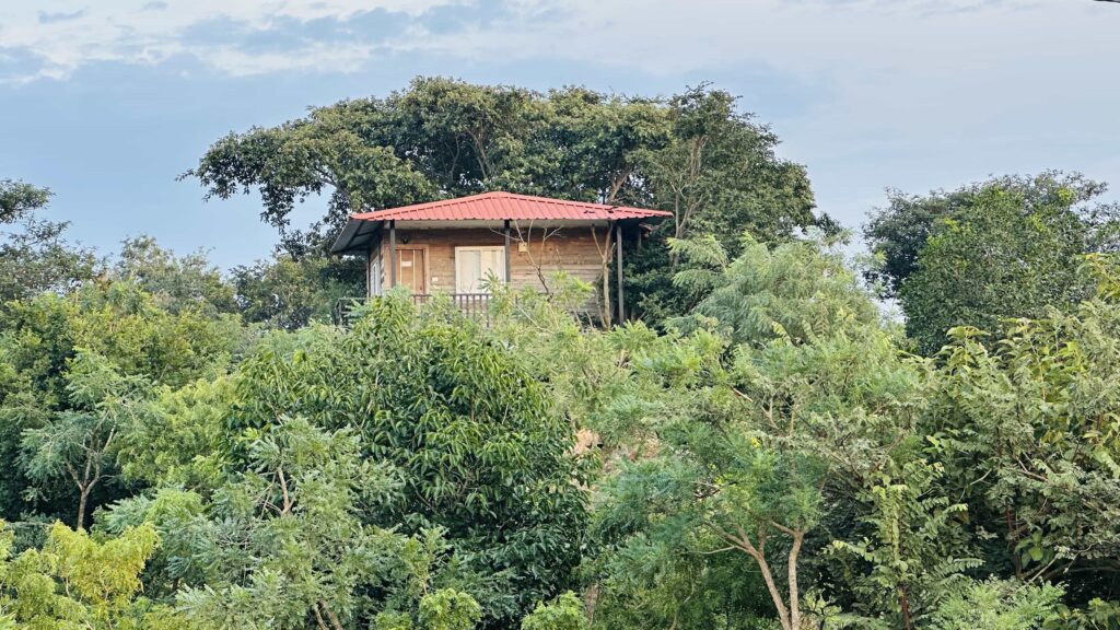 Nestled among the branches of a large Juvvi tree, this tree house overlooks a percolation tank often visited by wildlife including leopard, sloth bear, deer, and wild boar. It is named after Farha (Tigress F6), the reigning queen of Amrabad Tiger Reserve.